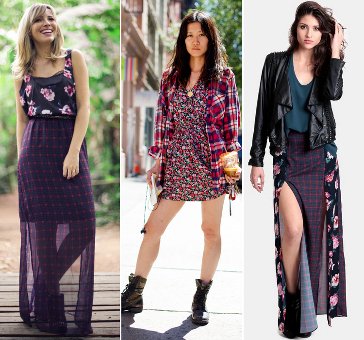 Continuando com o Outono Inverno: Cores escuras,Estampas escuras e Looks mais elaborados. Floral Com Xadrez estampas sempre presente nessa estação porém usadas separadamentes,agora encontradas em uma peça de roupa ou simplesmente mix de estampas na produção do look,Confira algumas opções e inspire-se:
